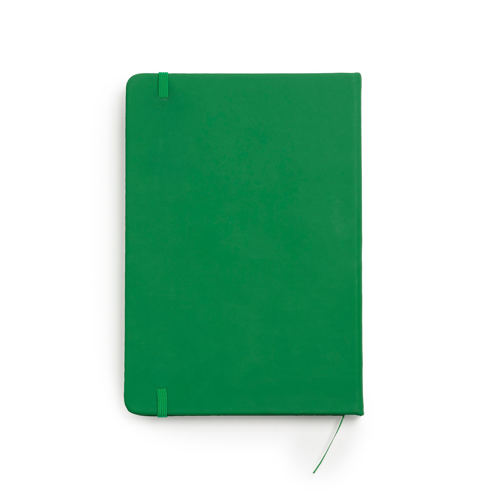 A5 notebook with imitation leather covers. Bookmark and elastic band. 100 lined sheets.Composition: Imitation leather.
