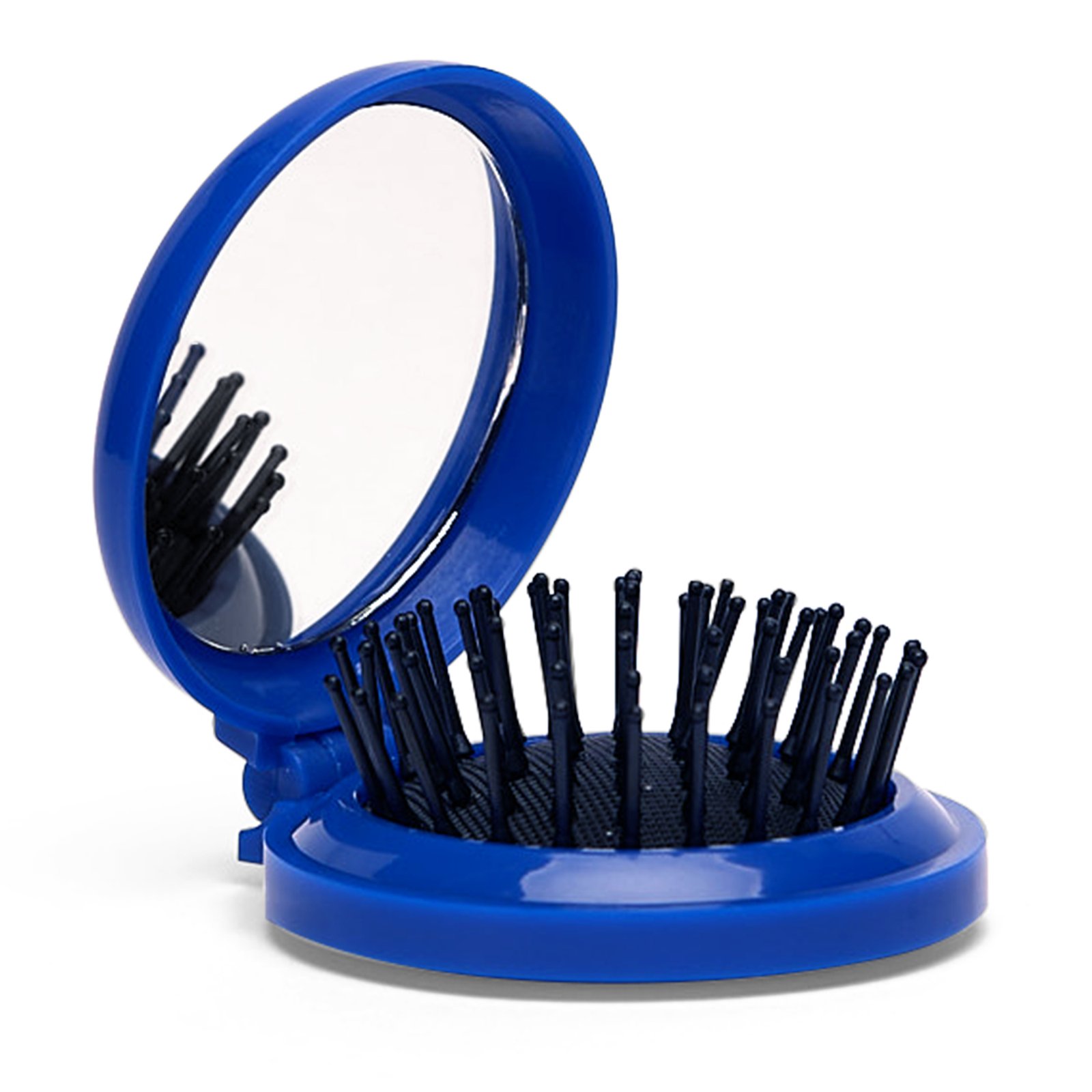 Practical folding brush with round pocket mirror. One part mirror and one part brush when opened, which becomes a compact and lightweight article when closed.Composition: Plastic and mirror glass.
