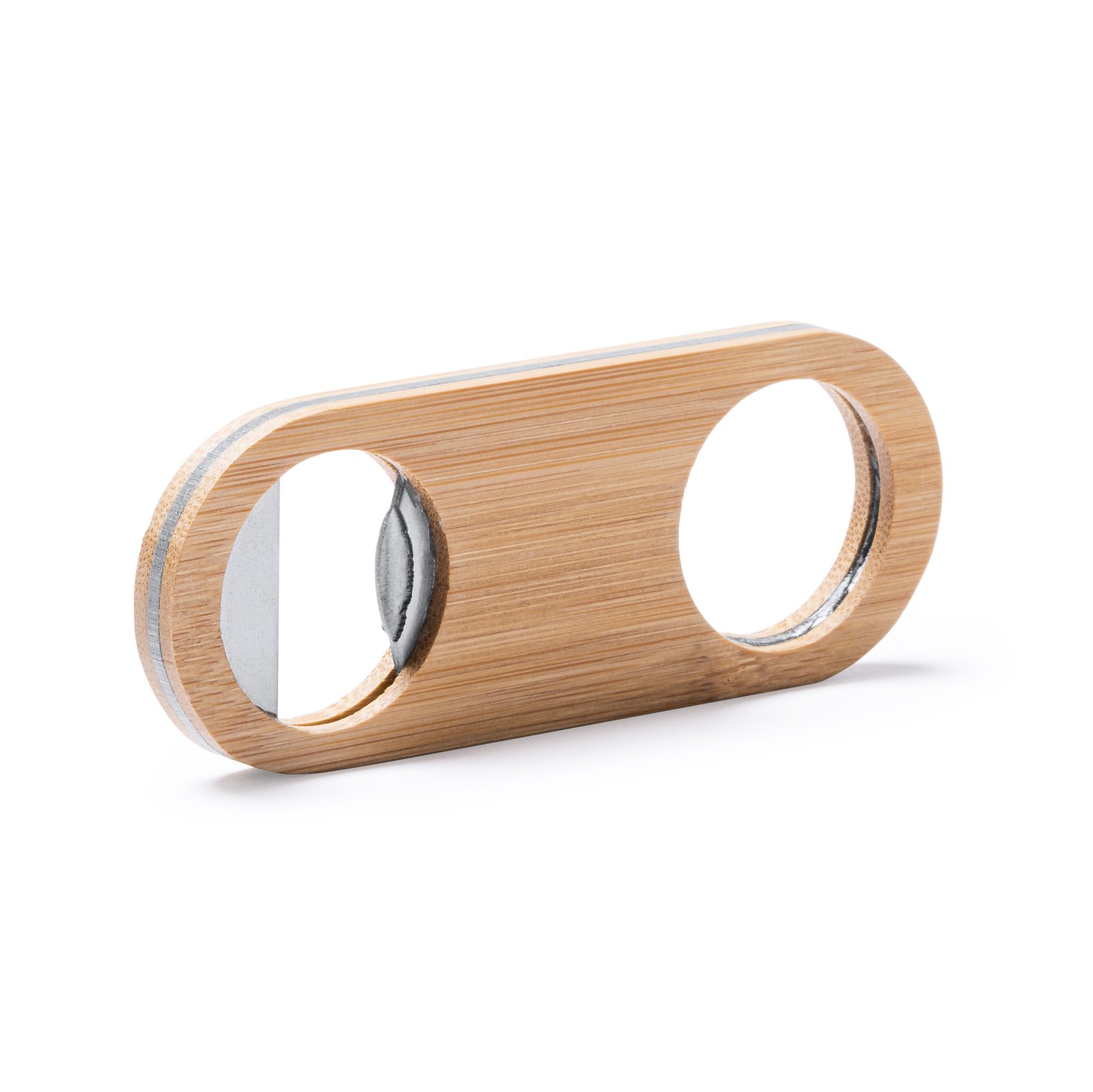 Compact design opener made of bamboo with a stainless steel interior and upper die-cast for hanging.Composition: Natural bamboo.Remarks: Being a product made with natural bamboo, there may be slight variations in size and colour.
