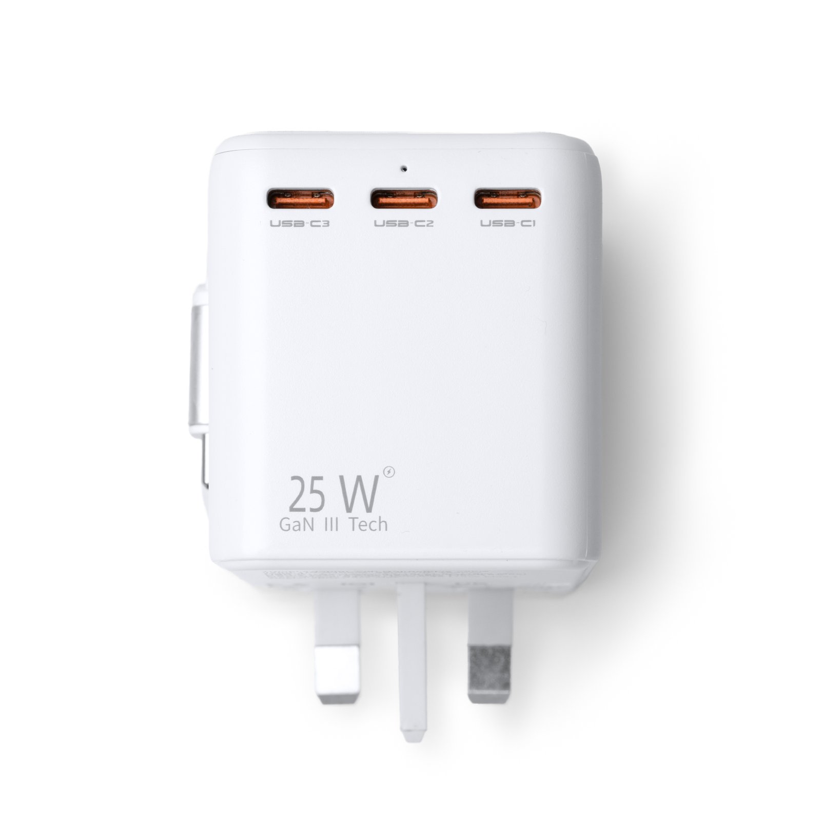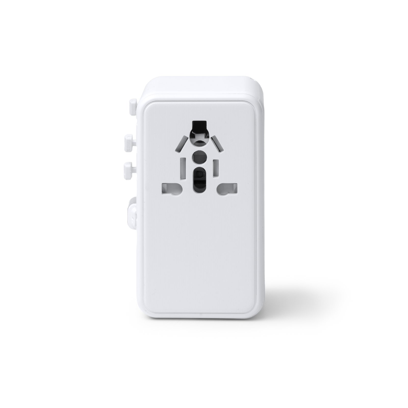 Travel plug adapter. Maximum power: 25W Valid for use in Europe, UK, USA, Asia and Australia. Includes 3 Type-C ports and 1 USB port. Built-in retractable Type C Cable. Presentation in design box.