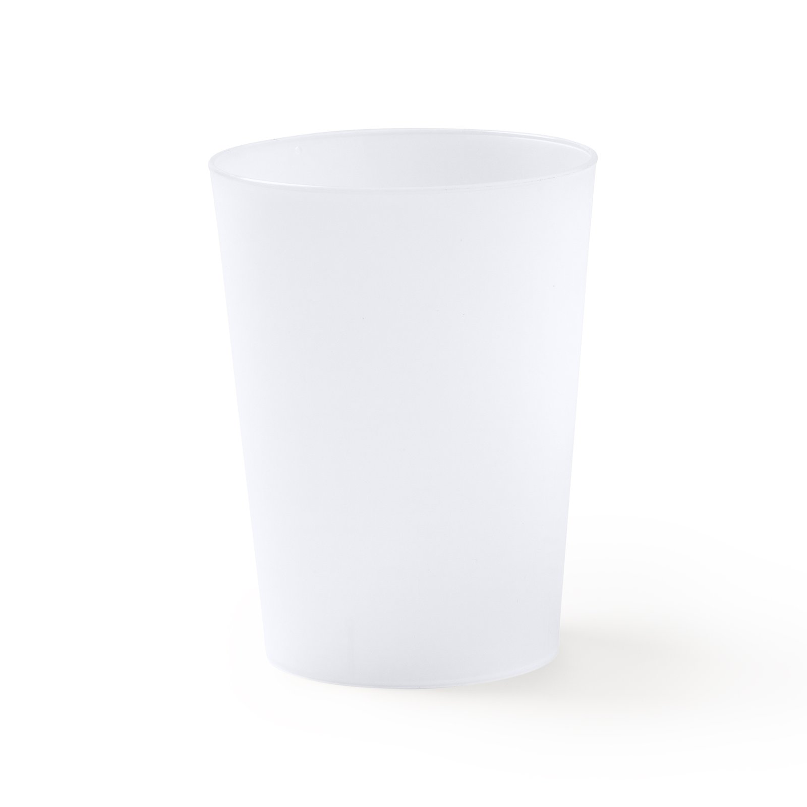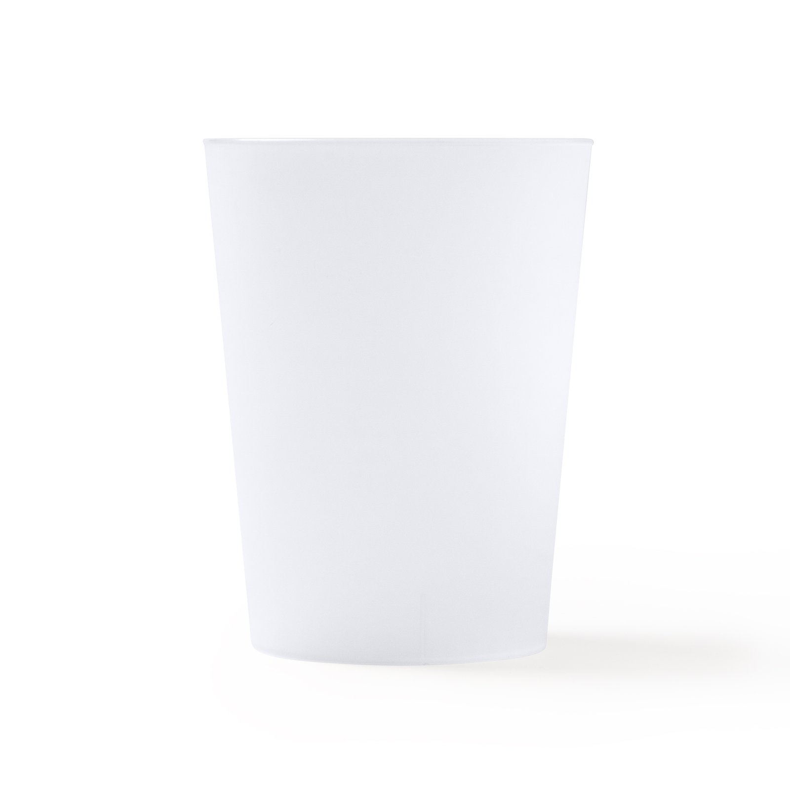 Reusable cup in resistant ductile PP. 500 ml capacity.Remarks: Non-dishwasher safe.