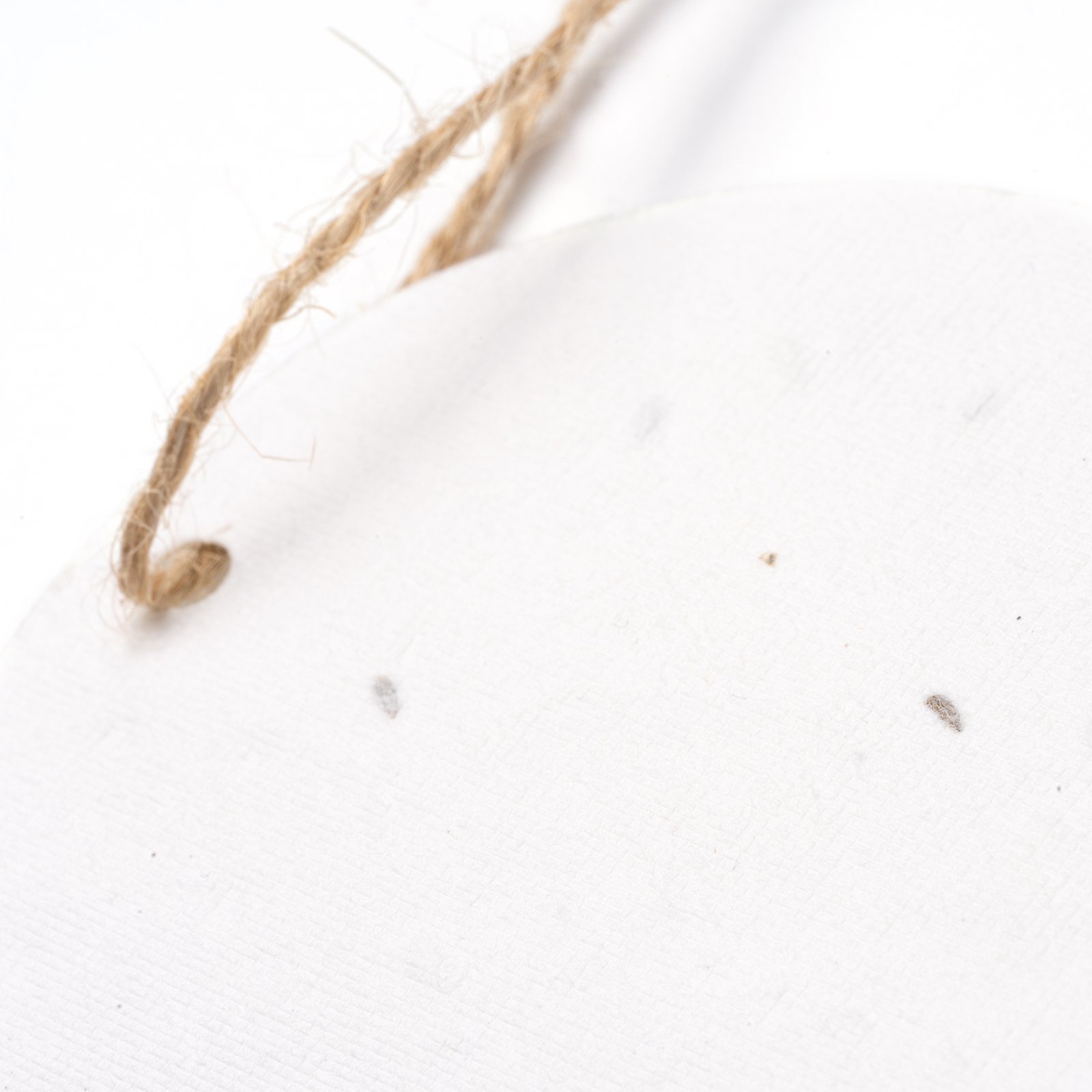 These ornaments are made from recycled paper, which helps reduce their environmental impact. In addition, they contain seeds in their composition, which gives them a special characteristic. After using them, they can be planted in the garden or in a pot, and the seeds will germinate and grow.