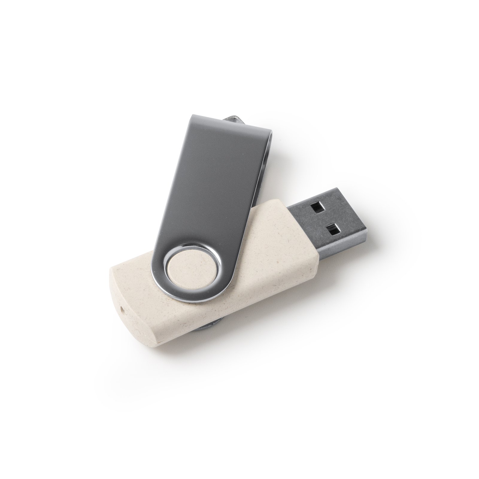 USB memory stick in wheat fibre with metal swivel clip. 16GB capacity.Composition: Wheat fibre.Remarks: Presentation in eco design box.